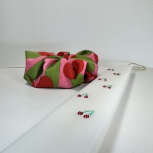 Χειροποίητο set λαμπάδας & scrunchie – Κεράσια