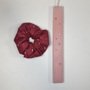 Χειροποίητο set λαμπάδας & scrunchie – Πολύχρωμες καρδούλες
