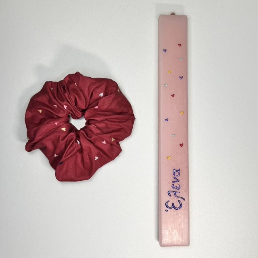 Αρωματική λαμπάδα ζωγραφισμένη στο χέρι με ασορτί χειροποίητο scrunchie. Ιδανικό δώρο για τα βαφτιστήρια σας!