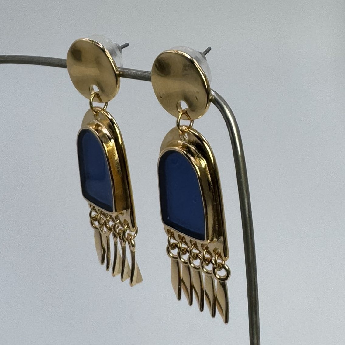 Επίχρυσα/επάργυρα μεγάλα οβάλ σκουλαρίκια με σμάλτο