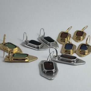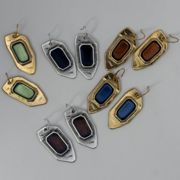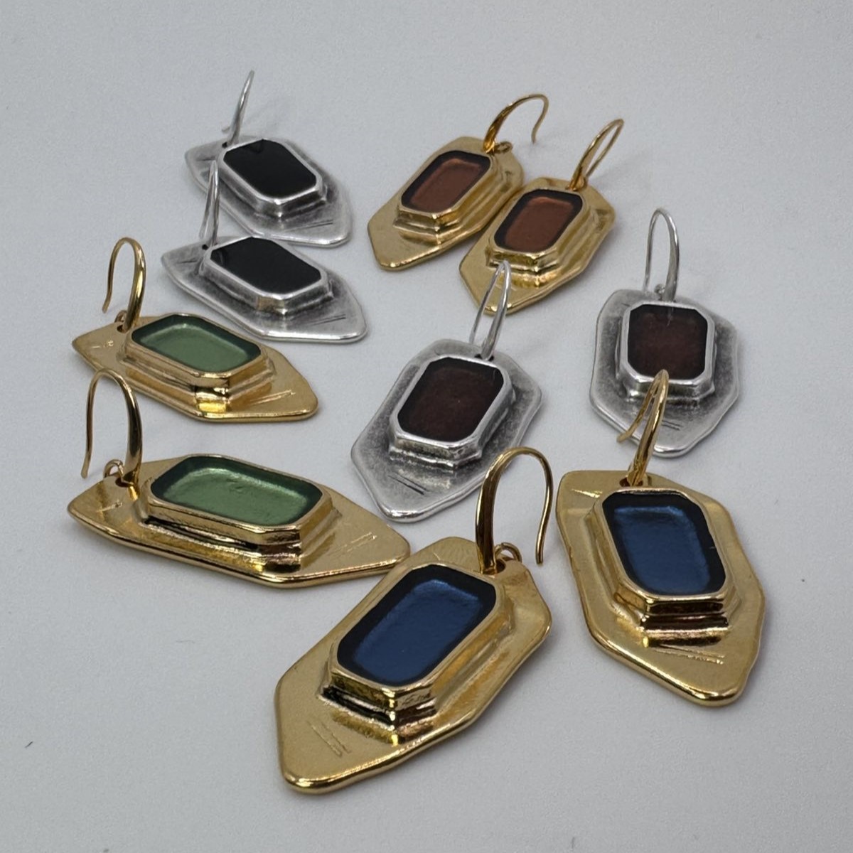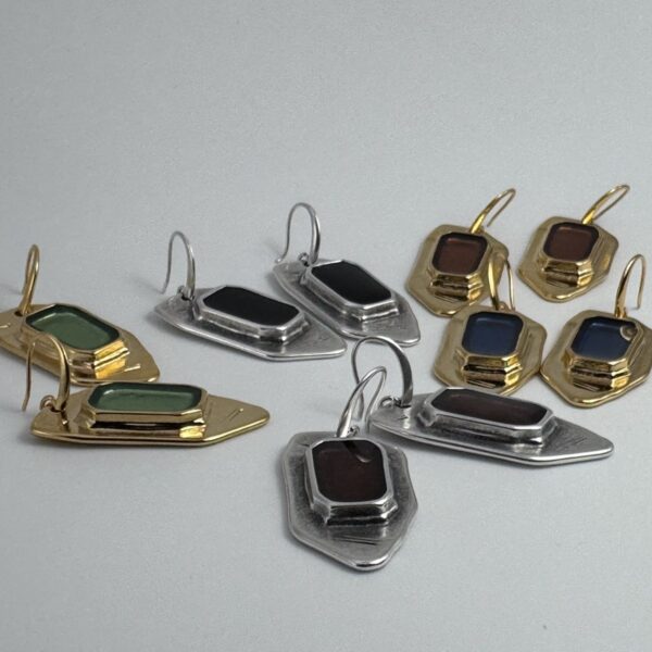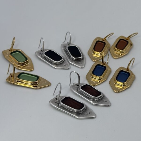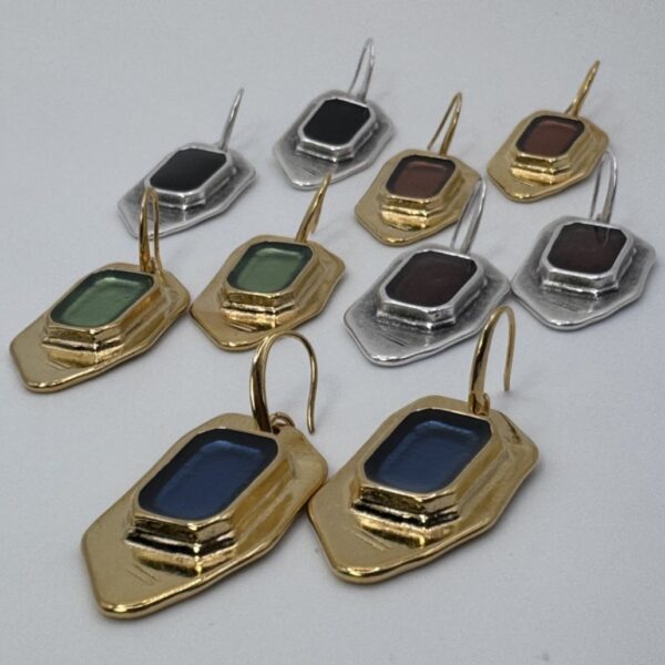 Επίχρυσα/επάργυρα μεγάλα πολύγωνα σκουλαρίκια με σμάλτο