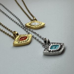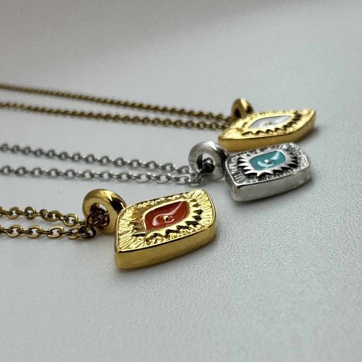 Επίχρυσο – Λευκό σμάλτο, Επίχρυσο – Πορτοκαλί σμάλτο, Επάργυρο – Τιρκουάζ σμάλτο |