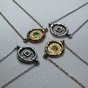 Ατσάλινη αλυσίδα με έθνικ κυκλικό στοιχείο με μάτι και γράνες