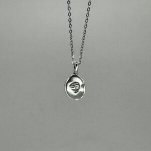 Ατσάλινη αλυσίδα με έθνικ κυκλικό στοιχείο με μάτι και γράνες