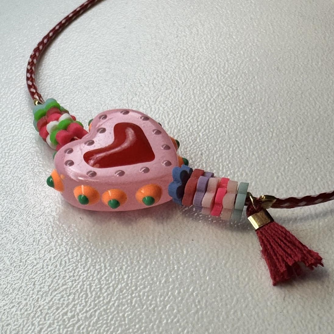 Felt χάντρες και ροζ φούντα, Felt χάντρες και μπορντώ φούντα, Ροζ χάντρα |